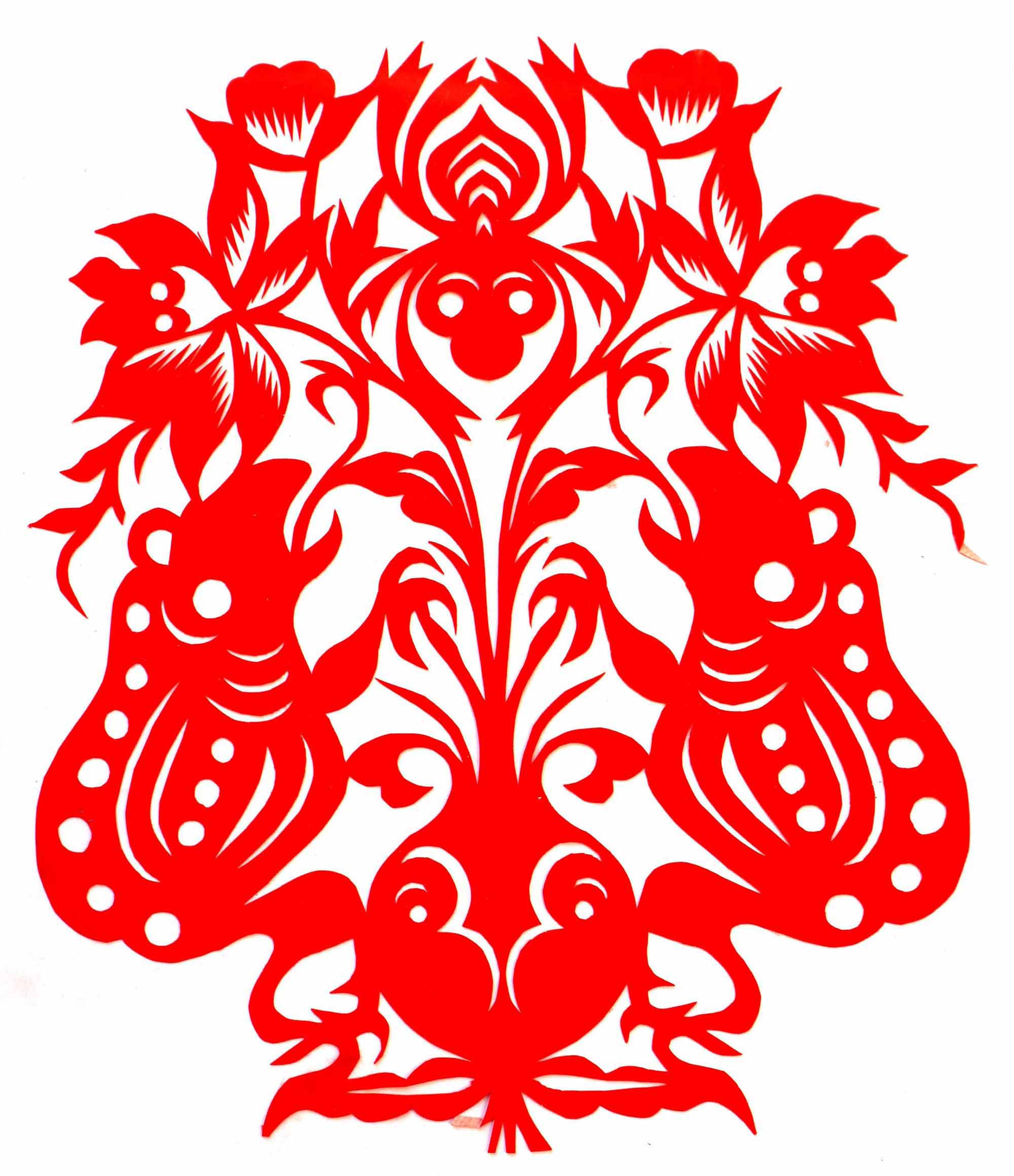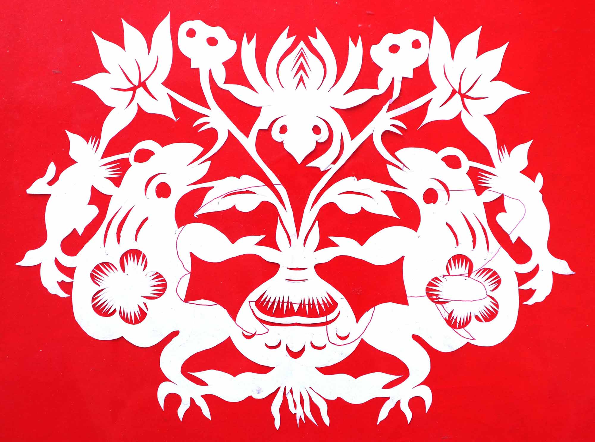 鲁跃芳在学窗花时,没有拓过样子,拿剪刀直剪,内容多是花草,对折起剪的莲花、牡丹、菊花、梅花,叶子多是变形的样式。富县的窗花兴时对花,花叶和枝叶分开来剪,然后拼贴成一幅完整的纹样,枝干用毛笔画成。自从16岁会剪窗花后,家里过年的窗花都是鲁跃芳来完成。在玻璃窗上贴窗花更为费事,先剪出花叶枝干,然后在玻璃上涂浆糊,再在窗子上拼贴。拼贴完后再一点点擦去浆糊,把7个窗子的窗花贴完需要半个多月。除剪窗花外,还要剪碗架云子、板架对子。一个寒假要制作100多幅,分别送给亲朋好友。