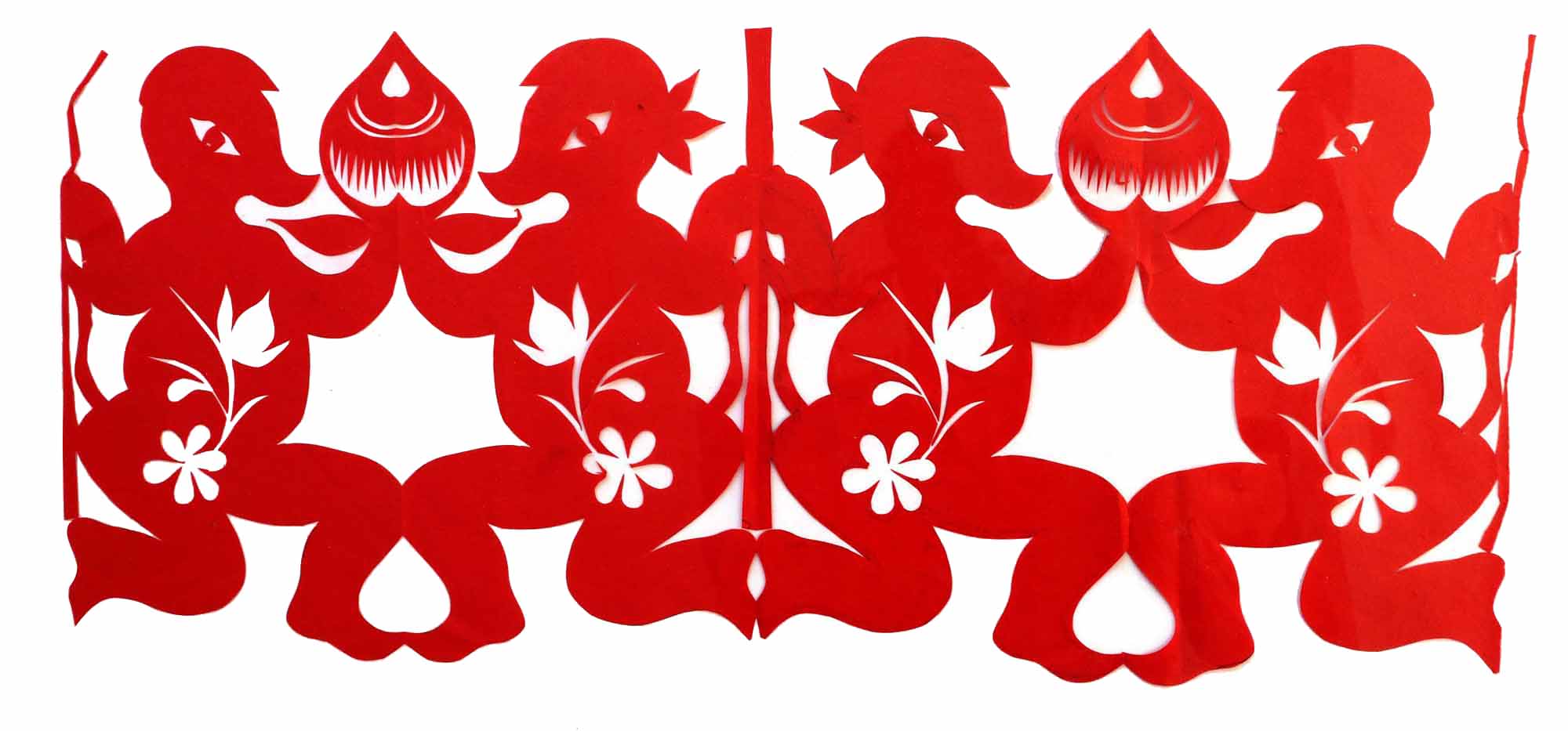 鲁跃芳,女,1961年1月27日生,汉族,高中文化程度。祖父农民,高中文化程度,民国时期曾当过县长,喜欢书法、绘画、文学。祖母出生于大户人家,心灵手巧,受过良好的传统文化教育,擅于剪花、绣花、捏面花、裁衣服等女红活。外祖父是老红军,解放后当过洛川县邮电局局长。父亲鲁中华,自学识字,国家干部,是一位老革命。母亲是当地有名的剪纸巧手,精通各种民俗剪纸,最擅长剪花草与绣花。