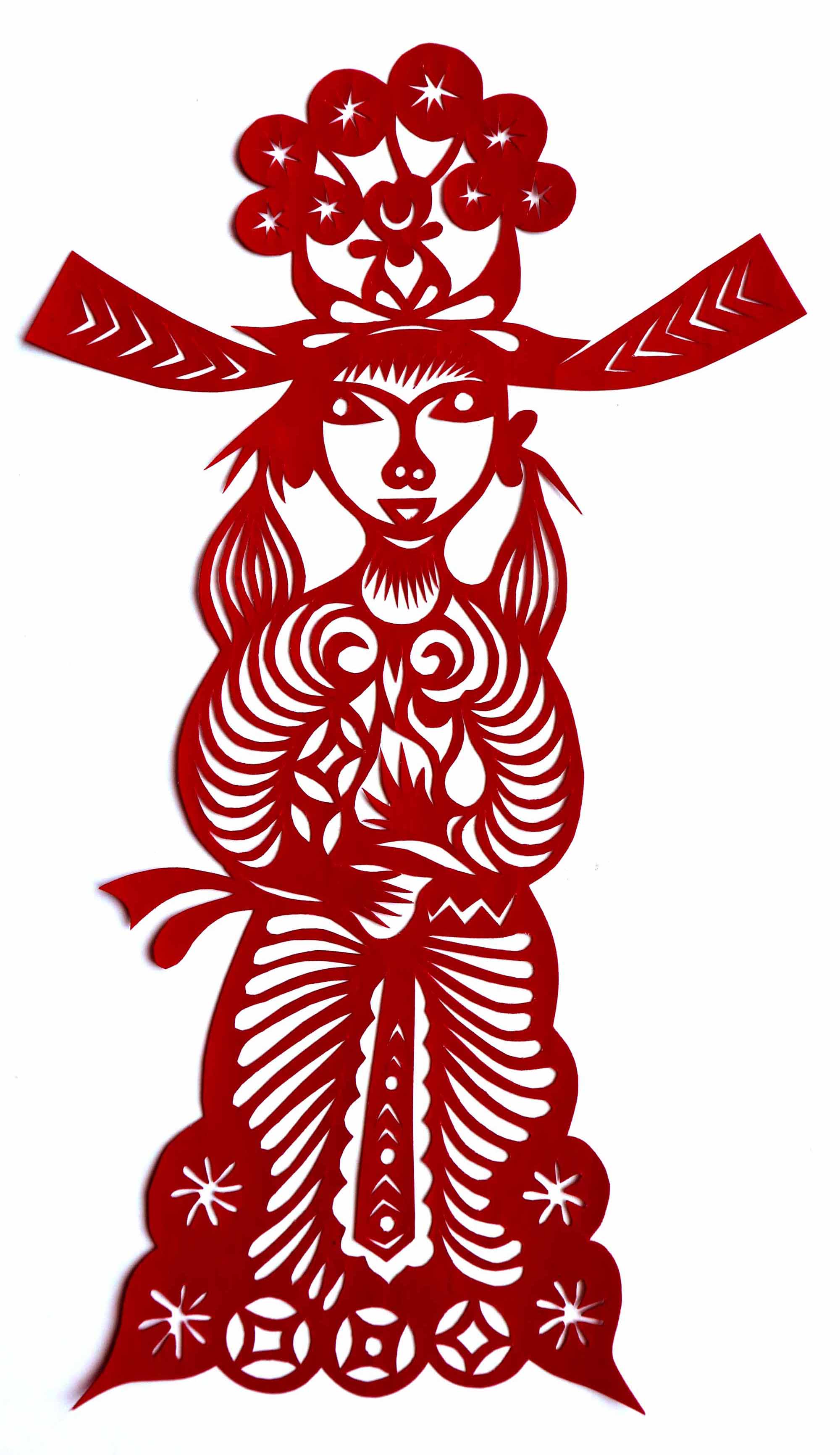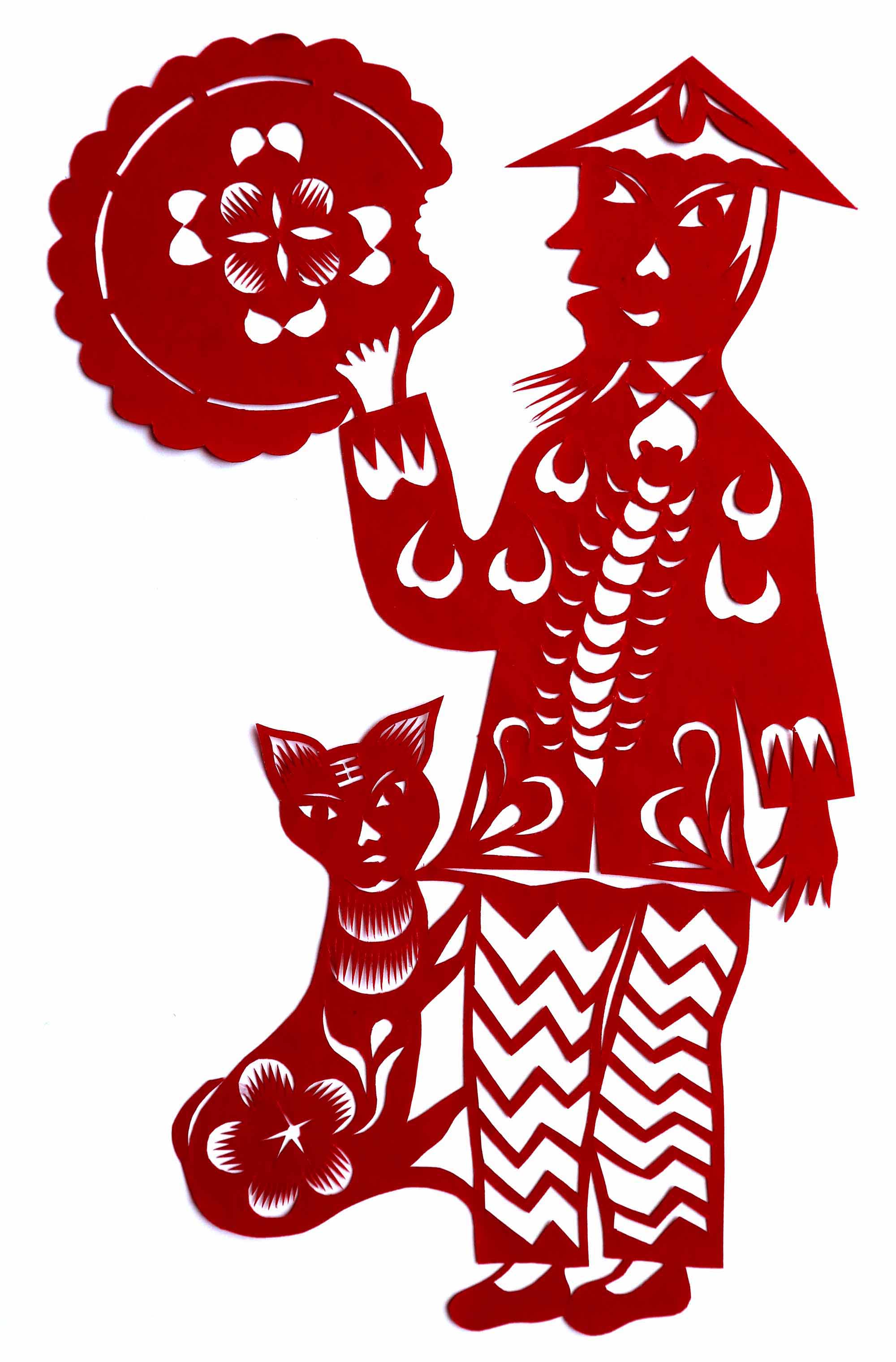 薛爱玲,女,1966年4月22日生,汉族,小学三年级文化程度,农民。祖父当时是巧手,会剪花、纸扎工艺、二胡,爱唱秦腔,父亲也继承了爷爷的基因。母亲擅于剪花、扎花、刺绣,常给她讲一些刺绣纹样中的寓意,龙凤呈祥是传宗接代,望子成龙,望女成凤。喜鹊闹梅是喜上眉梢,用于婚俗是男女相合,生儿育女。丈夫爱剪纸,曾上过富县剪纸培训班,很支持妻子剪花,凡是外出培训和一些剪纸活动都想法让她参加,创作时给她出主意,想题材。