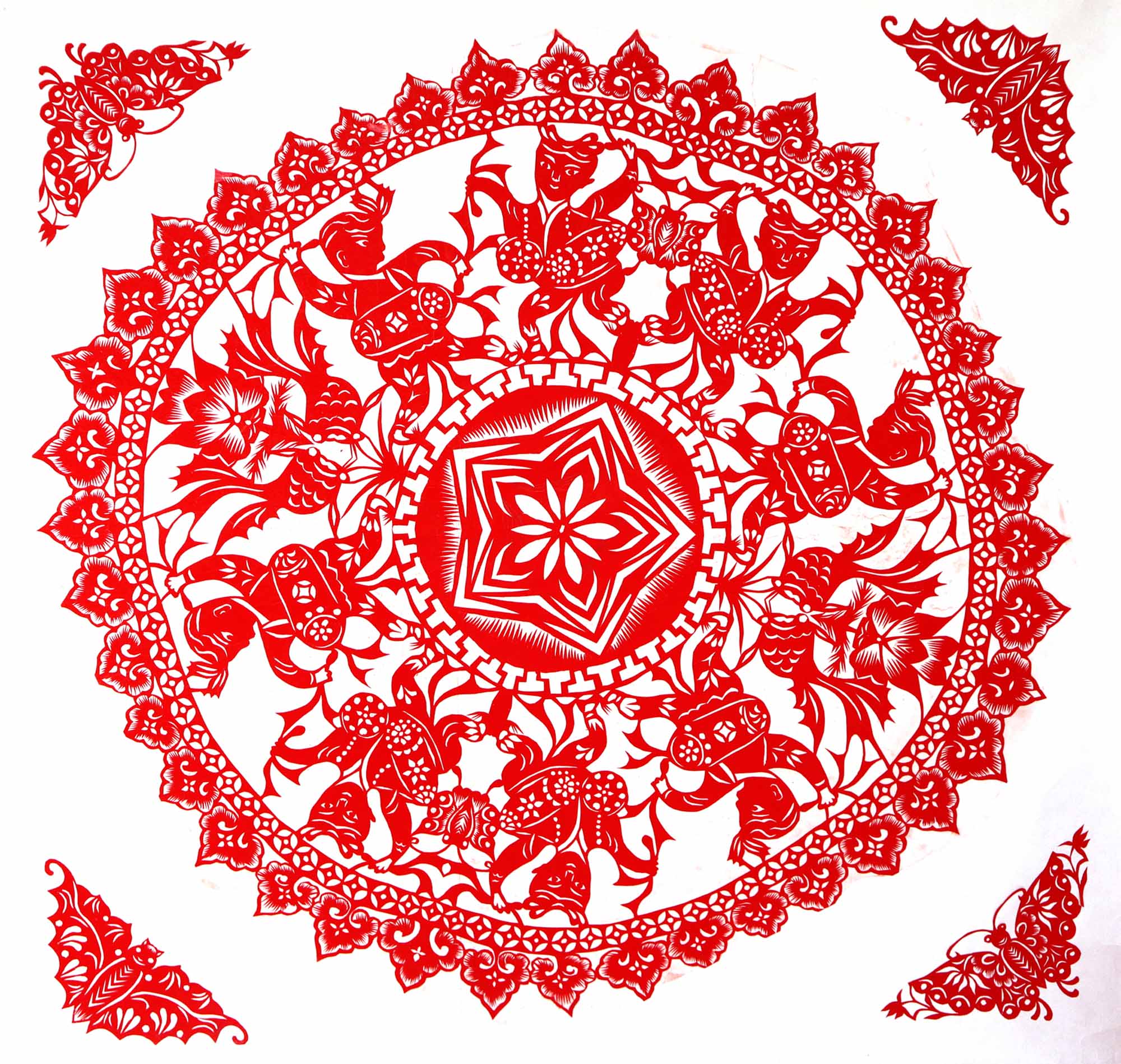 袁麦兰,女,1963年6月12日生,汉族,初中文化程度,农民。外祖母不识字,擅于剪纸、绣花、做衣服、做鞋,经常给村里出嫁女子绣上轿鞋,在当地影响较大。母亲小学文化程度,喜爱剪纸、刺绣、画画,擅于剪制碗架云子、碗架对子,在当地非常出名。家中有三个姨都能剪能绣,继承了外祖母的技艺。丈夫冯发财喜爱文化娱乐活动,爱唱陕北民歌、拉二胡,他支持妻子剪花,常给妻子说:“你只要爱剪就好好剪,需要啥就去买啥”。
