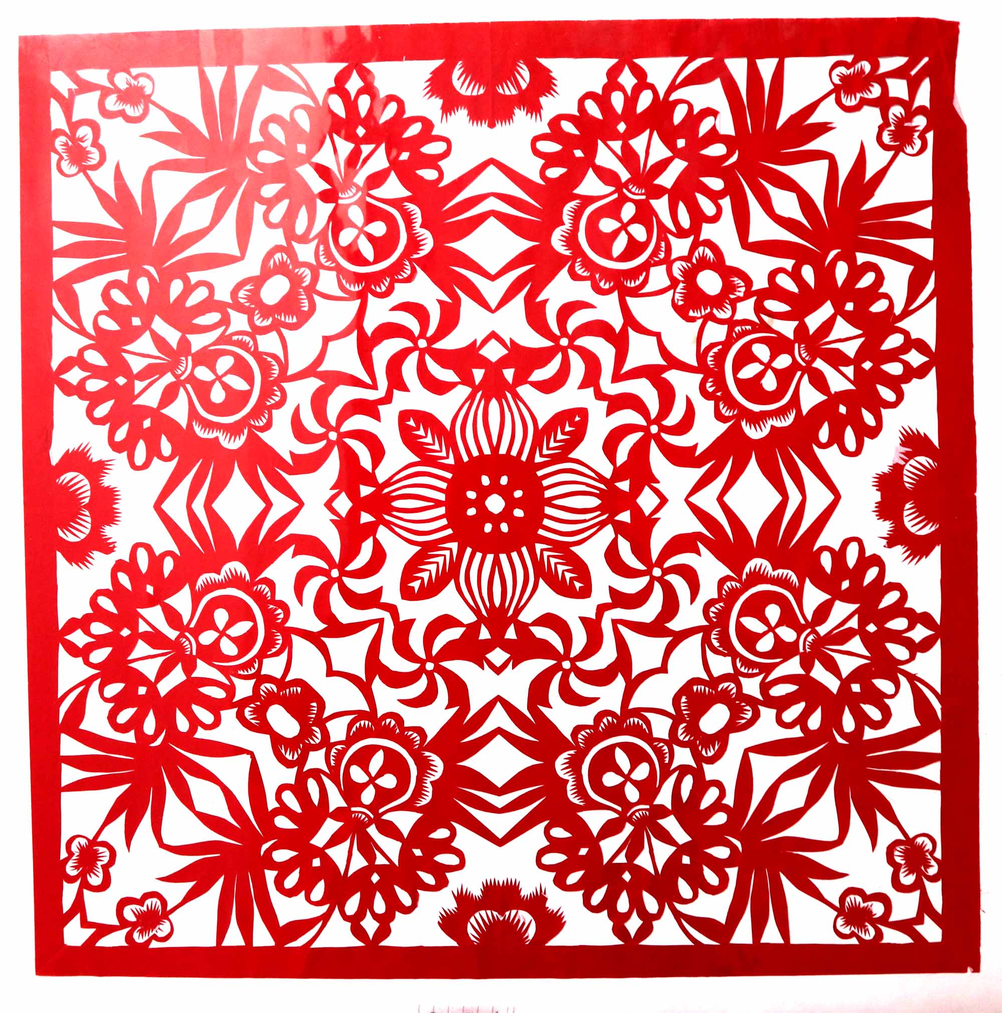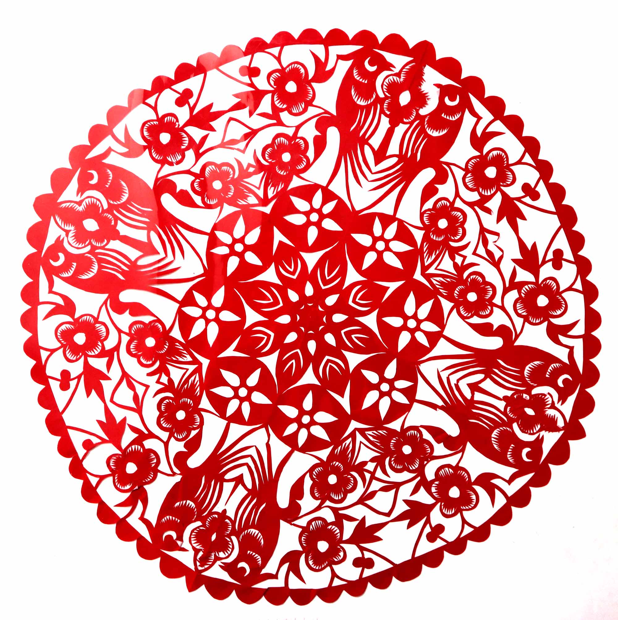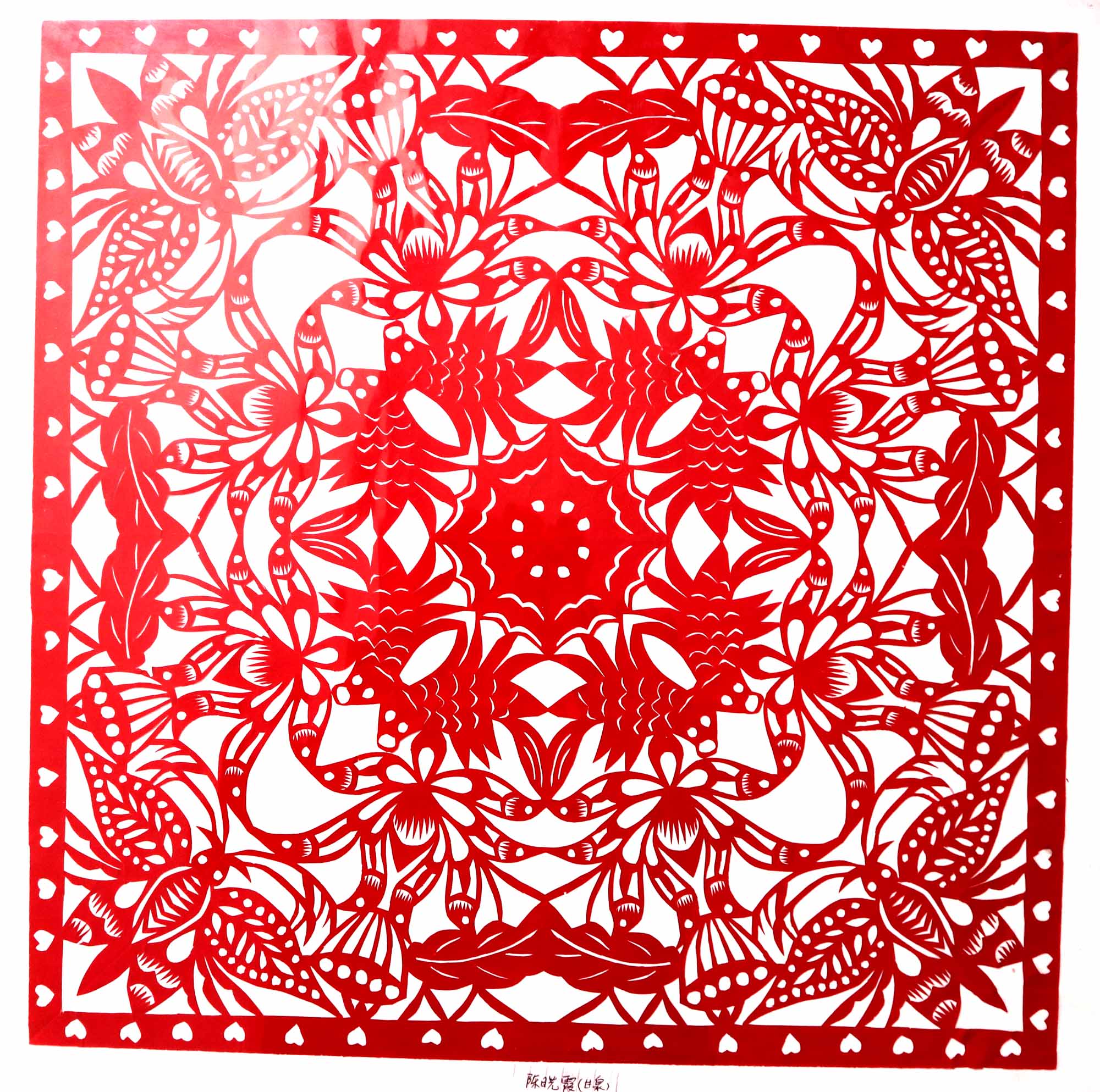 2018年,村里的干妈学习剪纸,陈晓霞在家人的支持下也跟着干妈学习剪纸。开始找了很多复印样子,拓着样子剪纸,学会了基本的剪纸技能。2019年7月,甘泉县就业局举办就业技能培训,陈晓霞报名参加了培训。后来又参加了全县的剪纸培训班。培训班高凤英任辅导老师,她是延安市剪纸传承人,因陈晓霞与人交流困难,高老师对她格外照顾。有什么想法看法,都是写在纸上或用手机敲出来,两人互相交流,手把手地修改剪纸。陈晓霞学习剪纸也很认真刻苦,把大量的时间都用在了剪纸上,进步很快。一年时间创作剪纸作品100多幅。