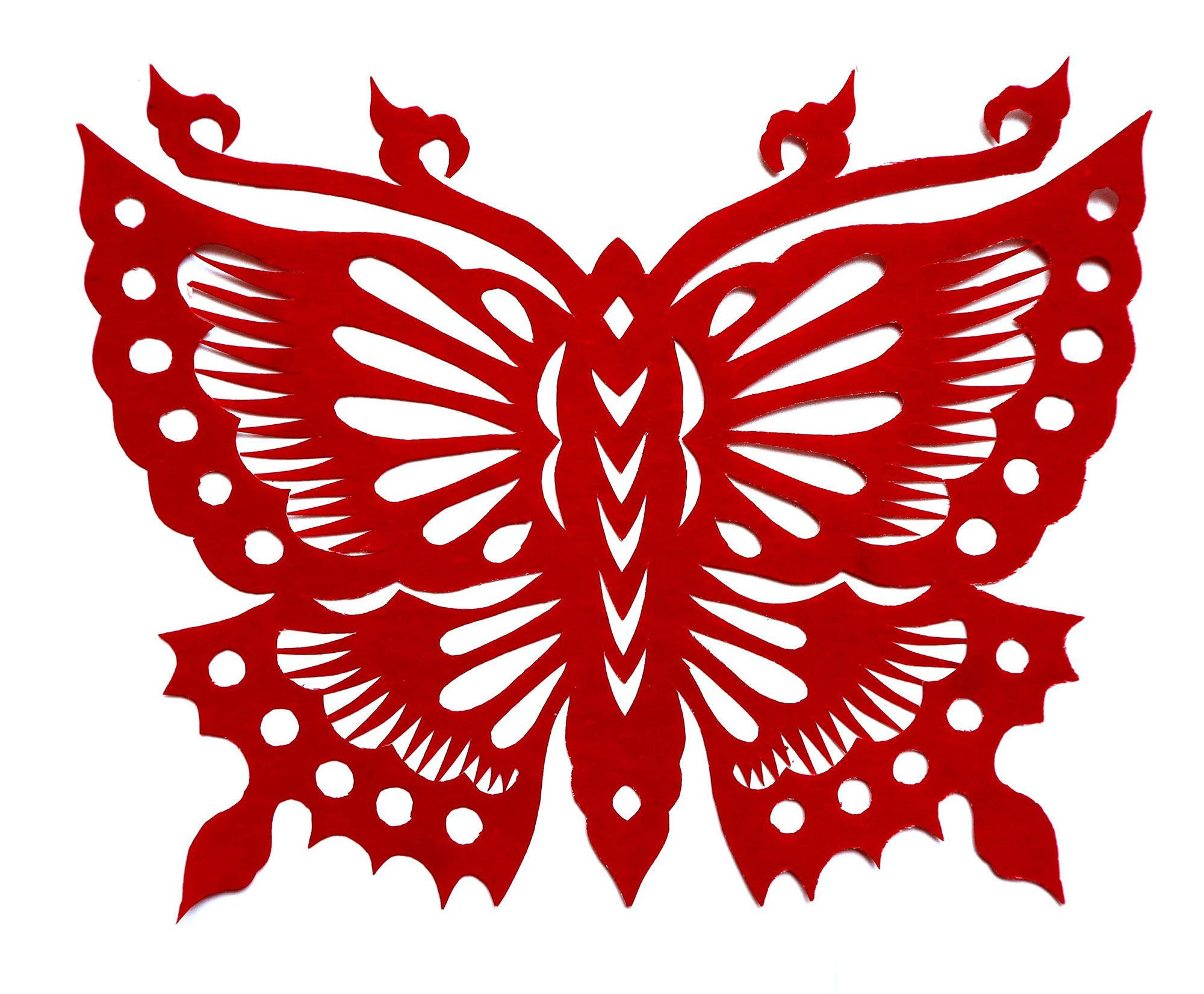 她从小受祖母的影响最大,常常跟上祖母学剪牡丹花、石榴等,学纳高粱盖盖。小时喜欢画画,上学时就爱上美术课,把美术课本上的范画一幅幅临摹。在学校给班上画版报,在家里没事就爱画些刺绣用的传统花样,如石榴、牡丹、莲花等, 12岁时就能给村上的女孩子们画鞋垫花样。一开始学剪纸就是冒剪花草动物,没有照过样子,到后来一步步剪些复杂的花样。过年用的窗花都是她来剪她来贴,也剪过婚俗中的上头馍馍“鱼戏莲”“笙鸡牡丹”等喜花。除剪纸外,她还跟着祖母学会了绣花、捏面花、编织、缝纫等女红活。2005年,郭飞琴结婚,婚后生有两个孩子,一儿一女,孩子小时整日的工作就是照看孩子,孩子上学后时间相对比较充足,她就进行剪纸创作。