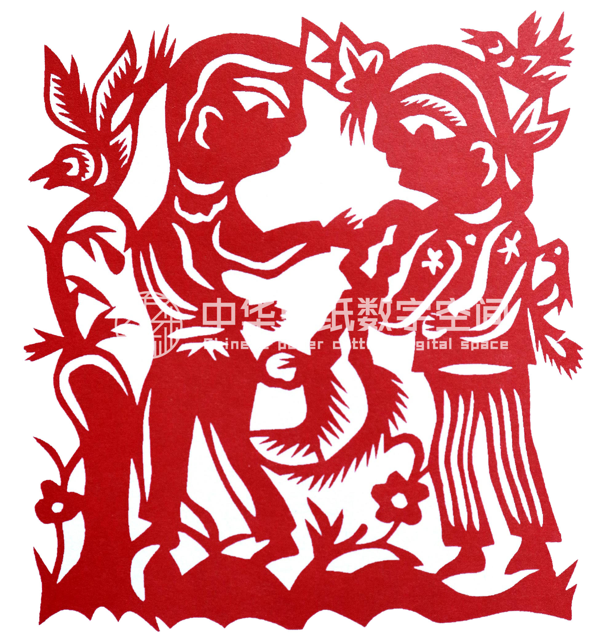 贺彩虹从小跟上姐姐一块剪窗花,帮村里人剪喜花,初学剪纸还是受母亲和姐姐的影响大些。开始就是冒画冒剪,剪花草动物,如《鱼戏莲》《老虎》等。逢年过节时与姐姐剪一些窗花,除自己家用外,还送给村人。1989年,贺彩虹出嫁,丈夫程国武对妻子剪纸活动非常支持。2001年,靳之林老师在小程村写生,晚上靳老师住在窑洞里,村民都围在靳老师周围,听大家唱民歌,靳老师听了贺彩虹的民歌后很高兴,就让她一边唱民歌一边剪纸。回家后她剪了一幅《梁山伯与祝英台》,第二天让靳老师看,靳老师看后特别高兴,说:“民歌就是剪纸,剪纸就是生活,”鼓励她一边剪一边唱,这样剪出的剪纸就有感情,就感动人。之后县上办的剪纸培训班以及省市的剪纸活动,贺彩虹基本都会参加。培训班期间,老姨高凤莲,姑姑刘洁琼都参加。高凤莲和刘洁琼都是剪纸大师,经过老姨的指导剪纸提高得很快。婚后因丈夫有了病,家务活农活比较忙,生活压力大,心里有不少的烦恼,但干完农活,一边唱歌,一边在灯下剪纸,能忘记一天的烦恼和解除一天的劳累,就这样创作出不少民歌作品。