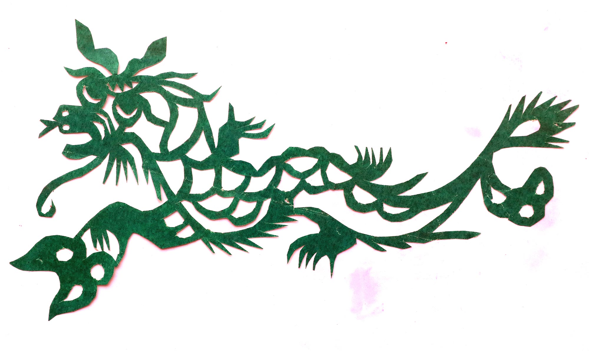 曹智龙7岁上学,初中毕业后考入渭南扶贫技术学院学习服装裁剪技艺。毕业后招聘到浙江衣香丽影公司工作,负责样衣的裁剪和制作。曹智龙上小学时就喜欢剪纸和绘画,常为班上和学校办学习专栏、办黑板报。过年时常向村里的婶婶、奶奶们讨要一些窗花,用煤油灯熏制,然后再拓着剪出来贴在自己家的窗子上,红红绿绿的窗花引起村人的好奇,说小子娃比女子娃手还巧,心都细。在村上只要听说哪位奶奶剪花好,他就想着法让奶奶剪给他看,然后回家再想这剪。通过自学,他学会了不少传统花草与动物纹样的造型和剪法。上初中时他的剪纸已打下了一定的基础,开始尝试剪纸创作,如遇到创作困难就翻阅资料,参考别人的剪纸作品进行修改学习。中专毕业后进入服装公司工作,每到晚上和节假日,他也不太出去玩耍,还是喜欢一个人呆在宿舍,画一画剪一剪,创作出了不少剪纸作品,部分作品参加了当地的美术展览,受到好评。智龙信仰佛教,对庙宇应用的剪纸比较关注。每年村上的庙会他都赶回家参与门符、神幡、五色旗、五色斗、神袍神衣的剪制。对于其中的文化内涵、俗规禁忌也比较了解。每到春节放假,是他最忙的时节,给村人剪门笺剪窗花,给神庙上剪门符神幡,给村人给同学剪喜花,加班加点着剪,忙得不亦乐乎。曹智龙的剪纸风格像他性格一样文静秀美,精巧工细。他说剪纸帮助了他学剪衣样的技巧,剪衣样又促进了剪纸水平的提高。他剪了一幅菩萨像,两边写着“香在炉中蜡在台,花在瓶中四季开。”这幅对联也是对他剪纸人生的最好写照。