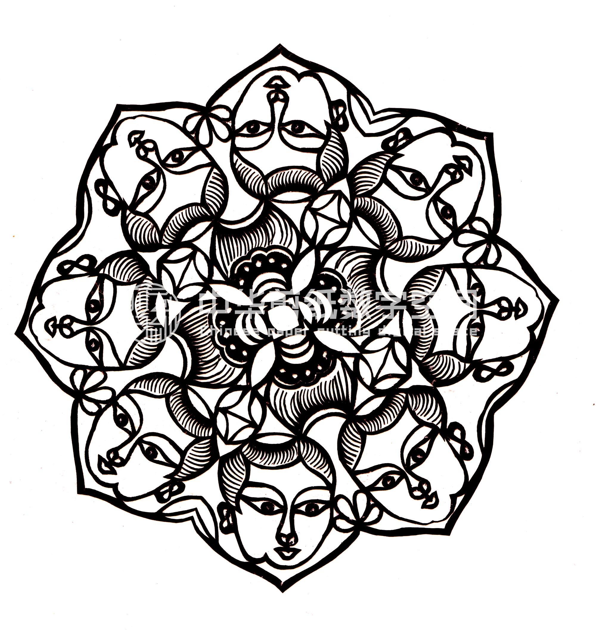 宋阿利外婆叫张艳娥,是当地著名的剪纸巧手,13岁那年学校放寒假,她到外婆家玩,见外婆正给村上结婚的人家剪喜花,她便坐在跟前看,越看越有兴趣,自己就拿起剪刀尝试着剪,就这样喜欢上了剪纸艺术。回家时让外婆熏了好多窗花样,喜花样,拿回家,有空就剪着学。宋阿利20岁时出嫁到甘井镇刘坳村,跟外婆家七八里路,只要一有空闲就往外婆家跑,学习外婆的剪纸技艺。有了娃后,家务忙,抽不出时间,外婆知道后常批评她说:“三天不剪手生,再忙也要坚持。”从那以后宋阿利开始真正下功夫学习剪纸,她干家务利索,只要做完家务,把娃娃哄睡下,她就拿起剪刀剪到半夜。功夫不负有心人,她剪出的剪纸受到外婆的夸奖,也受到村里人的喜爱,被村里人称为巧媳妇。