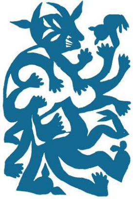 意象原型细节的舍弃转化,一方面要对画面进行删繁就简,另一方面,还要保持“简而不少”的应用原则。绘画作品的表现方式是,把对象的外形轮廓、表面肌理以及细节上的微妙变化都清晰的描绘出来,总体上给人以还原本色的真实感受。但剪纸却与之不同,它是要减弱与忽略繁琐内容,对于特色部位要着重加强,并从平面造像角度将物象描绘的形神相似,留有一定的遐想空间。从构图需要出发, 为使整体画面效果,有时会将某一物象的正常结构部分进行简化,如剪制人物时只剪出两到三根手指,面部仅剪一只眼甚至眼、耳、鼻等也被简洁的线面象征性的剪出;剪制动物的侧面形象时,只剪出其两条腿;娃娃的手足都省去不剪,按照大家通常的视觉习惯,一般也都能接受,不会有明显的视觉。