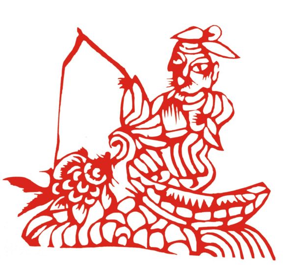 图: 剪纸作品《姜太公钓鱼》