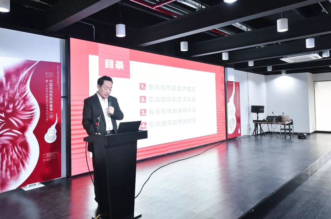 2018年12月2日,“中国民间剪纸特展第一回TOP100”暨“中国民间剪纸艺术学术研讨活动”在上海美术学院·南院举行。渤海大学特聘教授,中国工艺美术大师,国家一级美术师,北方民俗文化艺术研究中心主任,中国北方萨满剪纸艺术馆馆长,黑龙江省北方民俗剪纸非遗保护项目代表性传承人,大庆市民协副主席,中国民协中国艺术人类学协会会员刘延山先生向到场嘉宾介绍了东北剪纸的语言表达与艺术形式。