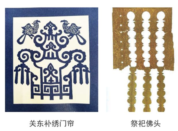 其三,是民间广为流传的剪纸、刺绣花样。这种剪纸多为在民间自发流动传播,以农家广大妇女为主体,作品在相互借鉴、相互借用中发展开来,有较强的生命力。如染麻花、拨云子、补绣、刺绣底样等等。其四,是节令喜花剪纸。在东北,每逢过年节庆,这里的家家户户都要张贴大红色的喜庆剪纸,来装扮家里的环境,营造浓郁的节日氛围,以表达祈福的心愿,期盼家丁兴旺,人寿年丰。如门钱、墙围花、窗花、灯花、棚花等等。其五,是民族特色丰富的纹样剪贴。这种剪纸多以东北地区的少数民族为主体,利用当地的天然材料和加工技艺,将本民族富有代表性的图案剪刻出来,缝制或粘贴在实用的物件上,装饰和美化他们的生活。