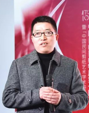 湖南师范大学副教授、硕士生导师、湖南省非物质文化遗产保护工作专家委员会委员、湖南省设计艺术家协会设计艺术理论专业委员会副主任、长沙市民间文艺家协会副主席、中国民间文艺家协会民艺杂志执行编辑陈剑先生介绍了湖南的地域剪纸文化——踏虎凿花与禾库剪纸的差异性。